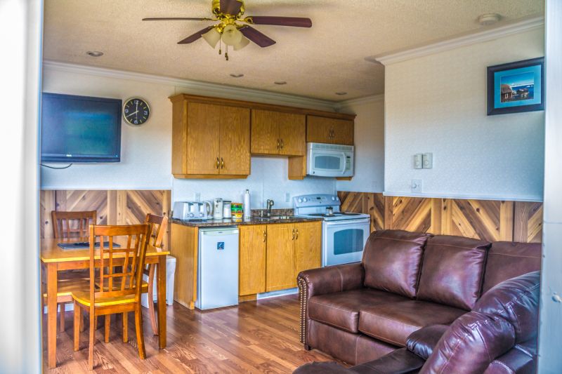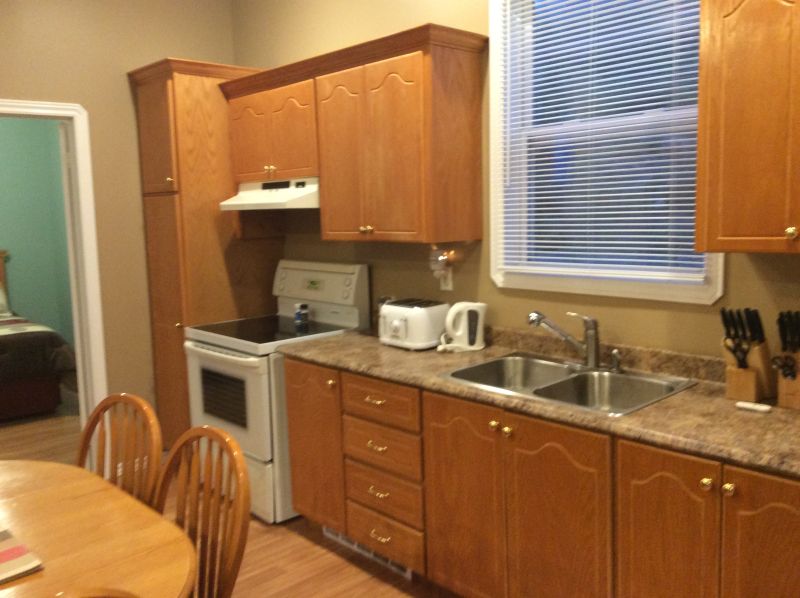 - Your own Kitchenette (Stove with Oven, Microwave, Bar Fridge, Toaster, Kettle, Pots, Pans, and Utensils)
